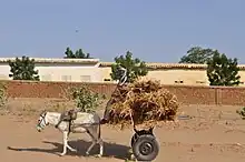 Most of the city's roads are unpaved, but the city has a highway which leads to Nyala. [lower-alpha 1] The locality is served by the Geneina Airport (IATA: EGN, ICAO: HSGN) and the El Shaheed Sibeira Airport (ICAO: HSSG), which hosts the Sudanese Armed Forces, and is used for flights across the country of Sudan. Since the start of the conflict, the airport has been closed and most likely destroyed due to large amounts of shelling and continued fighting.[11][12] The closest airports to it are Zalingei Airport, which is 110 kilometers (68.3 miles) away, and El Fasher Airport and Adre Airport in Chad.