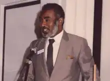 Gaafar addressing the WHO's General Council after receiving Shousha Prize, Geneva, 1989