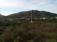 A notable feature of the town is the 47-meter-high[10] smokestack constructed in 1890 for El Progreso Mining Company. It is called "La Ramona", named after Saint Raymond, on whose feast day the project was completed on. The smokestack was once thought to be designed by Gustave Eiffel, though no conclusive evidence of his involvement in the project has been located.[6] After more than 100 years, the smokestack was cracked and damaged and collapse during an earthquake or hurricane was a concern.[6] In 2018, the nonprofits International Community Foundation (ICF) and the Corredor Histórico CAREM, A.C. collaborated to restore La Ramona for an estimated US$200,000.[6][11]