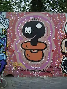 El Xupet Negre (The Black Pacifier) is a graffiti artist from Barcelona, Spain, who has painted a black pacifier/dummy logo since 1987.