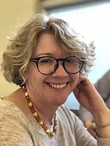 Elaine Treharne MArAd FSA FRHistS FEA FLSW was born in Aberystwyth, Wales, in 1964. She is a Senior Associate Vice Provost for Undergraduate Education and the Roberta Bowman Denning Professor of the Humanities, Professor of English, Courtesy Professor of German Studies and of Comparative Literature, and a Bass Fellow in Undergraduate Education at Stanford University.[1][2][3] She was at the University of Leicester for eighteen years as a lecturer, then professor, head of department, and dean, before emigrating to the USA.[4] She is a Welsh medievalist, focusing on Manuscript Studies, Early English literature,[5][6] and the History of Text Technologies, particularly of the handmade book.[7] She led Stanford University's online courses on manuscript study entitled Digging Deeper.[8] She is a qualified archivist, and a Fellow of the Society of Antiquaries[9] a Fellow of the Royal Historical Society,[10] and an Honorary Fellow of the English Association,[11] for whom she was also the first woman chair and President from 2000 to 2005.[12] Treharne was made a Fellow of the Learned Society of Wales in April 2020.[13] She is the President of the Teachers of Old English in Britain and Ireland (2022-2025).[14]