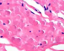- ↑ Nakamura, Y.; Ohta, Y.; Itoh, S.; Haratake, A.; Nakano, Y.; Umeda, A.; Shima, H.; Tomoda, N. (1992). "Elastofibroma dorsi. Cytologic, histologic, immunohistochemical and ultrastructural studies". Acta Cytologica. 36 (4): 559–562. PMID 1636353.
