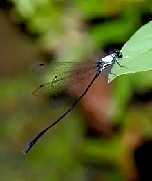 Elattoneura caesia is a species of damselfly in the family Platycnemididae known commonly as the jungle threadtail. It is endemic to Sri Lanka, where it is distributed across the central and southern parts of the island. It lives in streams and springs in primary rainforest habitat. It is considered to be vulnerable because of the destruction and degradation of local rainforest habitat.[1]
