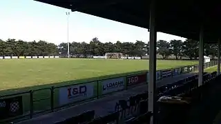 The main grandstand, which is situated between the clubrooms and the pitch, seats about 200 people. The total capacity of the facility is much larger, with an abundance of standing room all around the main pitch. Added to the main pitch, there is also a second pitch and over 100 parking spaces inside the facility. Both of the pitches are grass surfaces.