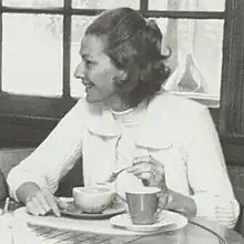 Eleanor Ruth Norris was born in Hollywood, California, in May 1918.[1][2][3] She was the eldest of two daughters of Ralph and Jessie Norris.[3][4] Her father, a studio electrician for Warner Brothers, died in a fall from a scaffold in January 1929, aged 37.[5][6] Her mother raised her and her sister on a small pension from the studio.[7][8] Norris later said that she matured quickly after her father's death and became "a pretty direct and straightforward young lady".[7]