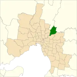 ![]() Location of Eltham (dark green) in Greater Melbourne | |