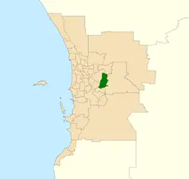 Based in the eastern suburbs of Perth, the district has a north–south elongation covering three separate built up areas. In the north, the district takes in the suburbs of High Wycombe, Maida Vale and a small part of Gooseberry Hill; in the middle it covers most of Forrestfield, Wattle Grove and part of Kewdale; whilst to the south is the suburb of Kenwick plus part of Maddington and Orange Grove.
