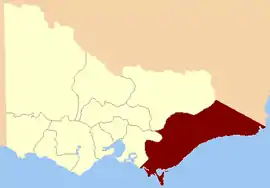 The Electoral district of Gipps' Land was one of the original sixteen electoral districts[1] of the old unicameral Victorian Legislative Council of 1851 to 1856. Victoria being a colony in Australia at the time. 37°55′S 147°00′E / 37.917°S 147.000°E