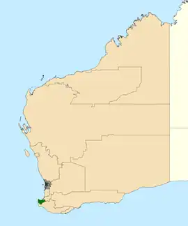 Location of Vasse (dark green) in Western Australia