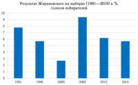 Vladimir Zhirinovsky's results in the presidential elections from 1991 to 2018