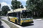 The company was awarded its first contract in November 1994, when the Miami Valley Regional Transit Authority, of Dayton, Ohio placed an order for 63 two-axle trolleybuses.[14] The order was later reduced to 61 vehicles,[15] and ultimately to 57.[16] Three prototype trolleybuses were delivered in December 1995 and January 1996.[15] These were designated by ETI as model 14TrE, the E standing for "export", and were given fleet numbers 9601–9603 by MVRTA.[16] Following modifications to the design, construction of the 54 production-series ETI trolleybuses for Dayton took place in 1998–99. These were model 14TrE2 and were numbered 9801–9854 in MVRTA's fleet. Among the modifications were the moving of the wheelchair lift from the rear door to the front door, which necessitated widening the body from 98 in (2,500 mm) to 102 in (2,600 mm) and changing from a one-piece windshield to a two-piece one.[1]