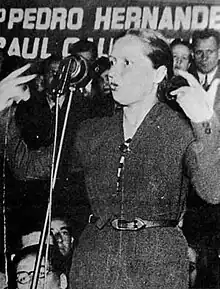 Caffarena and Olga Poblete were the founders of Movimiento Pro-Emancipación de las Mujeres de Chile (MEMCh) (English: Pro-Emancipation Movement of Chilean Women) in 1938 and were honored as "founding matriarchs" by MEMCh 1983.[5] The MEMCh fought for many different women's rights issues including, workers rights, abortion rights, breastfeeding and also decreasing infant mortality rates.[2] The main motivations of Caffarena and MEMCh were to increase democracy in Chile this is within and outside of the home.[6] The MEMCh's goal was not to completely over through the social system but to point out the flaws in the system.[6] MEMCh created a monthly bulletin called La Mujer Nueva that covers a range of topics from discussing the issues faced during daily life of women to international politics.[7] Caffarena herself was a major advocate for women to be financially independent from their husbands.[6] Caffarena was very curious about what the possible reason could be to keep women out of politics.[6]