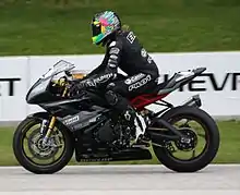 - ↑ Four cylinder motorcycles such as the Honda CBR600RR, Kawasaki Ninja ZX-6R and Yamaha YZF-R6 are limited to 600 cc (37 cu in) engine displacement, but larger displacements are permitted for V-twins such as the 849 cc (51.8 cu in) Ducati 848 and 1,124.9 cc (68.65 cu in) Buell 1125R. See AMA Supersport Championship and About: AMA Pro SuperSport, American Motorcyclist Association, 2009, retrieved May 20, 2010.