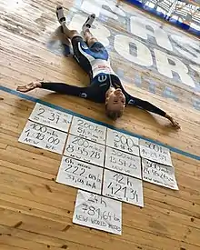 On September 17, 2017, she achieved 11 world records during the successful attempt to overcome the previous 24-hour record. All these records are Indoor Track – Solo – Standard – Women 18–49.