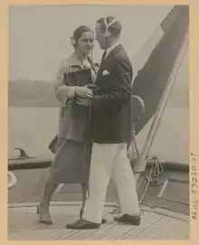 The luxurious accommodation was deemed necessary to impress distinguished guests – these would later include King Victor Emmanuel III of Italy and King George V of the United Kingdom. In September 1920 another guest on board was Marconi's friend, the Italian poet and nationalist Gabriele D'Annunzio. Elettra had put in at the port of Fiume (now Rijeka) in an unofficial attempt by Marconi to persuade D'Annunzio to drop his demands for that city to become part of Italy. Marconi allowed him to use the ship's transmitter, whereupon D'Annunzio made an impassioned speech to the world in which he urged Italy to annexe the territory. On 31 March 1930 Benito Mussolini visited the yacht when she was lying off Fiumicino.[12] This was followed with another visit in June 1930 when she was off Ostia. Mussolini, who was greatly interested in long distance wireless telegraphy and telephony, expressed a wish to be put through to London and communication was made via the Marconi wireless station, with its receivers at Bridgeport and transmitters and beam aerials at Dorchester in Dorset.[13] This formed part of the Imperial Wireless Chain that linked London with the British Empire. He had hoped to speak to Sir Basil Blackett but the latter was unavailable and so he conversed for a while with an operator at the station, commenting later on the clarity of the speech.[14]