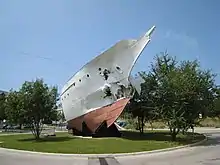 With all hope of a restoration lost it was decided that the remains of Elettra would be cut up and parts distributed around Italy to places that had been associated with Marconi and his work.[38] The breaking up of the yacht started in April 1977, the largest section recovered being the bow ('la prua'), which now sits in the middle of a roundabout in the AREA Science Park at Trieste. The locations of this and of other sections, including the whereabouts of Marconi's wireless equipment, are detailed on pages 33–43 of the publication Marconi e lo yacht Elettra.[39]