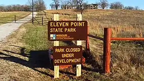 Eleven Point State Park is one of three new Missouri state parks announced in 2016 that is awaiting developments and is unopened.[1] The 4,167 acre state park is located mostly on lands of the historic Pigman Ranch near Riverton in Oregon County on Eleven Point River in the Ozarks of southern Missouri.[2][3] Plans called for hiking and walking trails, camping, fishing, picnicking, birdwatching, and nature study to be available.