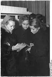 During the early years of the Nazi régime, Brüning participated in the Communist resistance, writing for the exile newspaper Neue Deutsche Blätter under the pseudonym Elke Klent and making trips to Prague, where it was published, as a courier for the Association of Proletarian-Revolutionary Authors. The KPD's illegal central committee met in the flat at her parents' shop.[3][4] On 12 October 1935 she was arrested and imprisoned in the Barnimstrasse women's prison, but was released after her trial for treason in 1937, since the Gestapo was unable to prove she had engaged in illegal activities.[5][6] She was able to obtain permission to write in prison, so in 1936 she published another novel, Junges Herz muß wandern.[5]