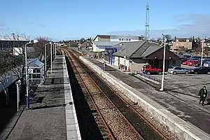 The present station, formerly the West (ex-Highland) station, was retained in 1968-69 was rebuilt and the platforms were raised. The new passenger facilities proved inadequate and it was rebuilt again in a modern style by British Rail in 1990 at a cost of £400,000[9] (equivalent to £970,000 in 2021).[10]