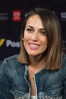 Elhaida Dani (Albanian: [ɛlˈhajda daˈni]; born 17 February 1993) is an Albanian singer, songwriter, composer and actress. Born and raised in Shkodër, Dani performed in diverse singing competitions and started to play piano as a child. She rose to national recognition in the Albanian-speaking Balkans, after her victories at Star Academy Albania, Top Fest and Festivali i Këngës. In Italy, she is also prominent for being the winner of the first series of The Voice of Italy.[2] Dani represented Albania in the Eurovision Song Contest 2015 with the song "I'm Alive", after she won the 53rd edition of Festivali i Këngës.[3] She participated in Kënga Magjike for the first time in 2017 with the song "E Ngrirë" whereas she finished second.[4] She rose again great popularity in Italy as well as in France upon her international acting debut in the world renowned musical of Notre-Dame de Paris.[5][6]