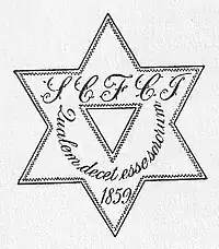 The insignia of the South Carolina Female Collegiate Institute (SCFCI) combined a six-pointed star and a triangle.[lower-alpha 9] The Latin motto was "Qualem decet esse sororum", "Such as sisters ought to be". It was a quote from the Metamorphoses of Ovid, book 2.