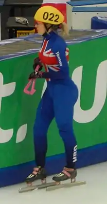 She was originally a figure skater but took up speed skating when she was about twelve years old. She then chose to stick with speed skating at the age of fifteen, when she moved to Nottingham to train full-time at the National Ice Centre.[4][5] She has given her reason for switching her ice discipline as "I just didn't like the fact figure skating has judging. I prefer the first over the line, wins the race."[4]