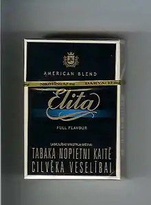 Elita is a Latvian brand of cigarettes that was produced between 1967 and 2009 by the Latvian company "Rīgas Tabakas Fabrika" and later by British American Tobacco. According to the data submitted by the Latvian State Revenue Service, Elita was the most sold brand filtered cigarettes in Latvia for the period of about twenty years.[2]