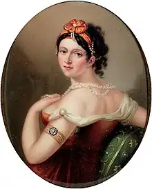 Despite her beauty, she was considered vulgar, shrewd, greedy, and unsuited to aristocratic society on account of her common background; however, she attracted lovers and admirers, including the Russian Grand Duke, the future Nicholas I.[4]