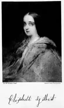 Elizabeth Gilbert was born in Oxford, the daughter of Ashurst Gilbert, principal of Brasenose College, Oxford, and later the Bishop of Chichester[2] and his wife, Mary Ann Wintle Gilbert. Elizabeth caught scarlet fever at the age of two, which resulted in her becoming blind. Her parents chose to educate her alongside her sisters, and she learned languages and music, and after 1851 used a "Foucault frame" writing device to write.[3] She also enjoyed tactile astronomy lessons with an orrery, according to her biographer. "The little fingers fluttered over the planets and followed their movements with great delight."[4]