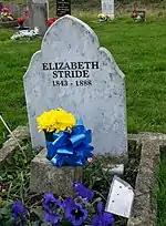 Elizabeth "Long Liz" Stride (née Gustafsdotter; 27 November 1843 – 30 September 1888) is believed to have been the third victim of the unidentified serial killer known as Jack the Ripper, who killed and mutilated at least five women in the Whitechapel and Spitalfields districts of London from late August to early November 1888.[2]