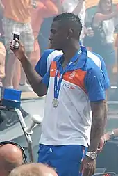 In May 2010, Elia was included in the preliminary squad for the FIFA World Cup in South Africa despite facing uncertainties over his injury that he sustained while at Hamburger SV.[244] On 27 May 2010, Dutch manager Bert van Marwijk announced that Elia would be part of the 23-man final squad for the 2010 FIFA World Cup.[245] Prior to the tournament, Elia caused controversy in the Dutch media when he tweeted "cancer Moroccan", prompting a ban of use of Twitter.[246] This led Elia making an apology for his action.[247] In the first match, he came on as a substitute in the 72nd minute and set up their second goal in a 2–0 win over Denmark, with his shot hitting the post and Dirk Kuyt tapping it in.[248] Following this, Elia found his playing time, coming from the substitute throughout the tournament.[249] He later said about the role, saying: "If I come in for five or ten minutes, then I do my very best and I want to show my good side. It's nice to fill in, because the boys also help you well."[250] In the final, Elia was a 71st-minute substitute for Kuyt, as Netherlands finished runners-up to Spain.[251]