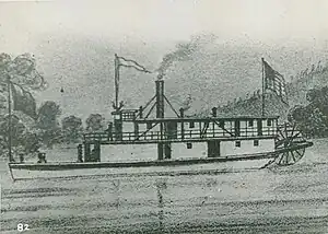 Elk made its trial trip from Canemah to Champoeg, Oregon on Thursday, October 8, 1857, covering the distance in 131 minutes.[6] This was only five minutes less than the best time for the Enterprise, a sternwheeler built in 1855.[6] Elk was received enthusiastically at Butteville, Oregon and Champoeg, with the local populace cheering and firing off cannons as the steamer reached each landing.[4]