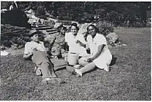 Malcolm Little (left), two unknown women, and Ella Little-Collins (right) in Franklin Park, Roxbury