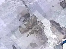The island is characterized by broad lowlands and locally by dissected uplands which reflect the diversity of structures and lithological characters of the bedrock formations. The island is rimmed by low shelving coastal areas, domal structures (salt dome) with cores of diapiric anhydrite and secondary gypsum constitute striking features of the landscape. Two major structural provinces of the Arctic Archipelago are represented: the Sverdrup basin which includes the greater part of the island and preponderant thickness of sediments: and the Arctic Coastal Plain, an area at the north-eastern extremity of the island.[2] These salt domes create the highest topographic features. While most of the island is flat lying, the salt domes stand out clearly on satellite. There are seven domes, Dumbbells, Contour, Hoodoo, Malloch, Haakon, Helicopter and Isachsen Dome (260 m [850 ft]) which is the highest point on the island. On the north part of the island, there is a concentration of gabbro and diabase dikes and sills. Most of the rock is Jurassic to Cretaceous with the northern part (Isachsen Peninsula) being Tertiary. The Jurassic and Cretaceous rocks are varying formations of sandstone and shale. The sediment was deposited in the Sverdrup Basin. The salt diapirs are Carboniferous.