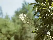 Elliottia racemosa is a rarely occurring species of shrub or sometimes small tree. The leaves are three to four inches long and one to two inches wide. It blooms with white flowers, with four petals. It produces a dry fruit.[3]