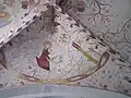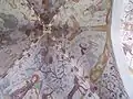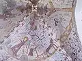 The most comprehensive wallpainting work was in fact carried out by the Elmelunde Master presenting a variety of scenes from the story of the Creation and the New Testament but also with illustrations of everyday activities such as ploughing and hunting. Between the paintings, margins with frills depicting flowers, plants and other ornaments can be seen. The figures all have sleepy faces, a characteristic of the Elmelund Master. Colours include black, ochre, caput mortuum, and cinnabar which has now faded to verdigris.[3]