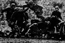 Wynne, playing for Notre Dame, leaps over the USC Trojans defensive line in a November 1926 game at Soldier Field in Chicago