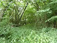 This coppice with standards site has diverse woodland types and ground flora. Plants indicative of ancient woodland include nettle-leaved bellflower, wood spurge, butterfly orchid and the uncommon spurge laurel.[3]