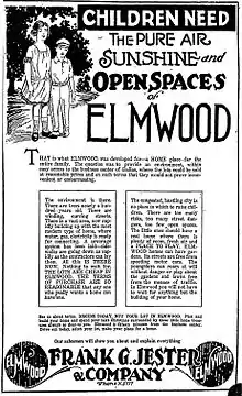 A 1920s Dallas Morning News advertisement for Elmwood Addition describes it as an ideal place for raising children.