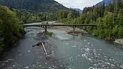 ![]() U.S. Route 101 crossing the Elwha River with Mt Fairchild in the Background. | |