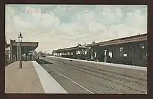 In the 1920s there were carriage sidings to the east of the station which were used by stock for local all stations trains towards Newmarket, Peterborough, King's Lynn and Norwich. The engine shed and goods yard were located south of the station and a level crossing was located immediately north of the station.[4] The level crossing existed because the underbridge had limited clearance so taller lorries had to travel this way sometimes causing delays to the railway services.