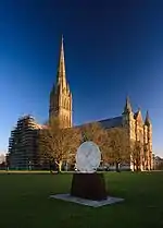 Young's sculpture is held in many public as well as private collections. Some of her permanent installations can be seen in St Paul's Churchyard and Salisbury Cathedral.[8] Young's Lunar Disc 1 was installed at Loyola University Chicago in 2011.[9]