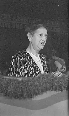 ![]() Emma Sachse at the First Delegates Conference of the Women's Committees 1946 in Berlin. | |