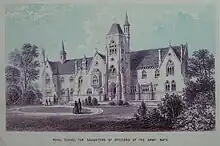 In 1864 the Royal School for Daughters of Officers of the Army was founded by philanthropist Alfred Douglas Hamilton. Funding came in part from Queen Victoria who was a patron.[2] The school's mission was to provide practical and religious education for the daughters of army officers who might otherwise be unable to afford it. The school received 76 applications for the role of Lady Principal. Kingdon arranged for a letter of recommendation from Florence Nightingale and this may have been the reason she was chosen. The school had a large building identified in Lansdown near Bath and Kingdon's first task was to supervise its conversion to a boarding school. She devised a curriculum[1] and ordered furniture, carpets, curtains, linen, crockery, and monogrammed cutlery.[3]