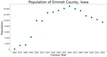 - ↑ "P2 HISPANIC OR LATINO, AND NOT HISPANIC OR LATINO BY RACE – 2020: DEC Redistricting Data (PL 94-171) – Emmet County, Iowa".