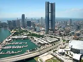 The Empire World Towers were two proposed supertall skyscrapers to be built in Miami, Florida in the United States. The complex consists of the Empire World Tower I and the Empire World Tower II. If completed, both towers would stand at 1,022 feet (312 m), with 93 stories each. They would surpass the Panorama Tower and become the city and state's tallest buildings, since the approved One Bayfront Plaza had been reduced to a height of 1,010 ft. The towers were not built, but in 2023 the supertall Waldorf Astoria Miami began construction on the same block at 300 Biscayne Boulevard.