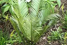 This cycad is stemless, growing from an underground stem that's about 30 cm long and 25 cm wide. Occasionally, a small part of the stem may emerge above the ground.