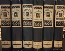 Encyclopedia Lituanica (likely named after Encyclopædia Britannica or Encyclopedia Americana)[1] is a six-volume (about 3600-page) English language encyclopedia about Lithuania and Lithuania-related topics. It was published between 1970 and 1978 in Boston, Massachusetts by Lithuanian Americans who fled Soviet occupation at the end of World War II. To this day, it remains the only such comprehensive work on Lithuania in the English language.