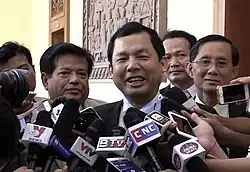 Eng Chhai Eang (Khmer: អេង ឆៃអ៊ាង born November 10, 1965) is a Cambodian politician. He served as a vice president of the Cambodia National Rescue Party, the major opposition party, until its court-ordered dissolution in 2017. He was a member of the Parliament of Cambodia and served as the Secretary General of the Sam Rainsy Party from 1999 to 2005 and again from 2007 to 2009. He also served as the Special Secretary to Sam Rainsy, the Minister of Economic and Finance, from 1993 to 1994.