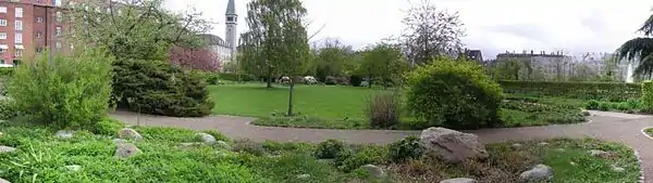 In the late 19th century, the Royal Danish Horticultural Society established 478 allotments in "Dronningens Enghave" at the site where Enghaveparken lies today.[1] In the 1920s the allotments were moved and the small public park Enghaven was laid out under the direction of City Architect Poul Holsøe, who also designed the red-brick social housing which was built at the same time and borders the park on three sides. Tredje Natur has won a competition to redesign the park.